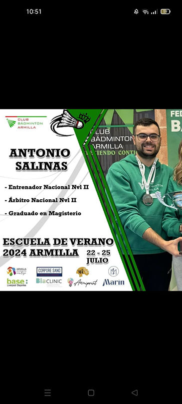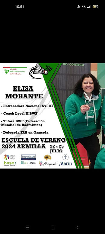 Y naturalmente especialización en nuestro deporte al máximo nivel, por la Federación Andaluza, Española y mundial de bádminton.